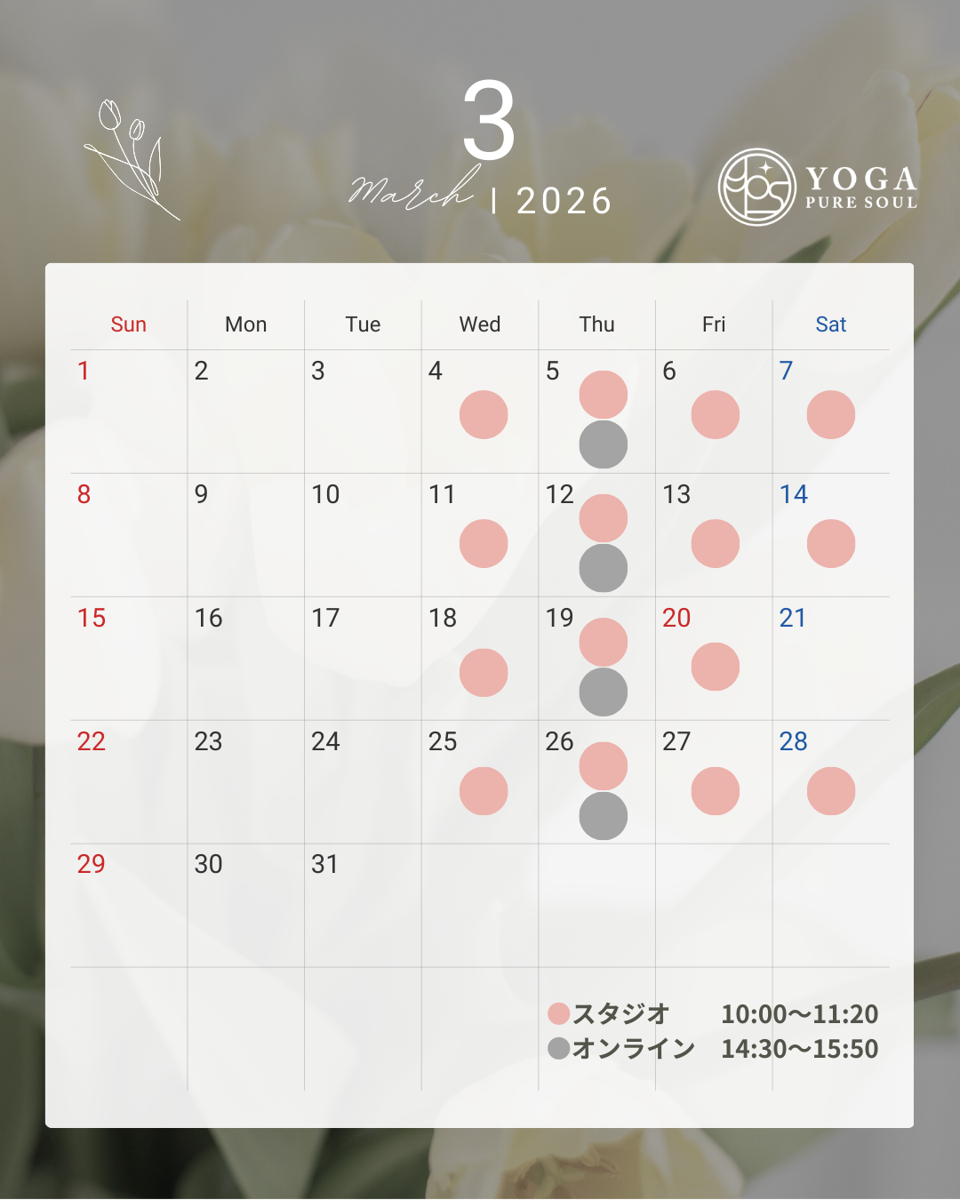 【ご予約期限】それ以降はお受け出来かねます〈体験レッスン〉スタジオクラス……2日前までオンラインクラス…当日1時間前まで(オンライン未経験の方は3日前まで)〈2回目以降〉スタジオクラス…私が連絡に気付くまでオンラインクラス…当日1時間前まで※予定が変更になる場合があります。【お知らせ】をご確認の上、ご予約ください。